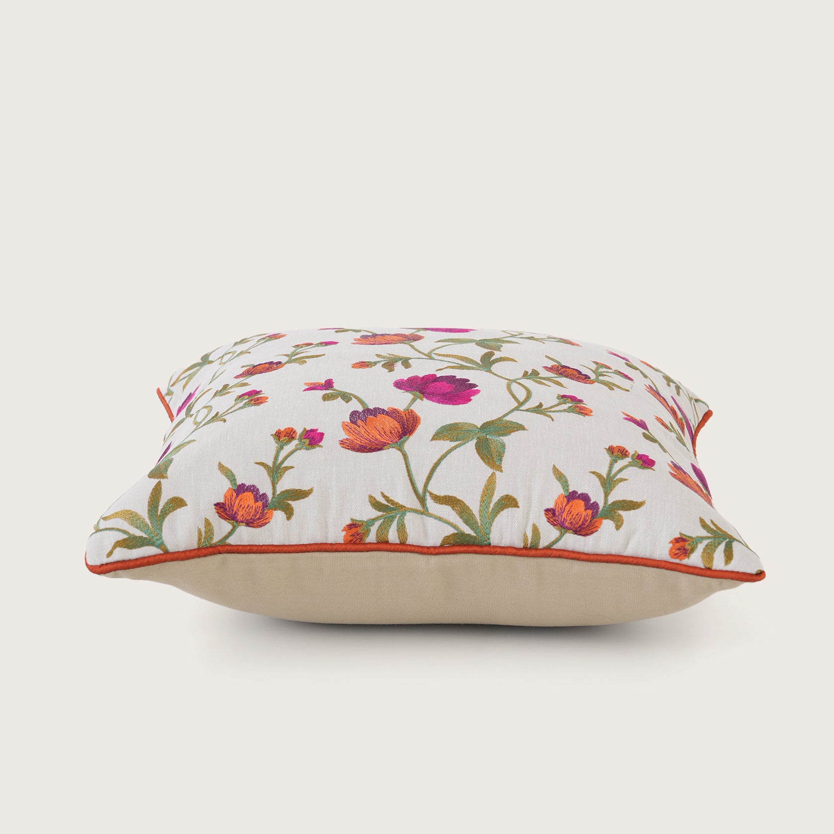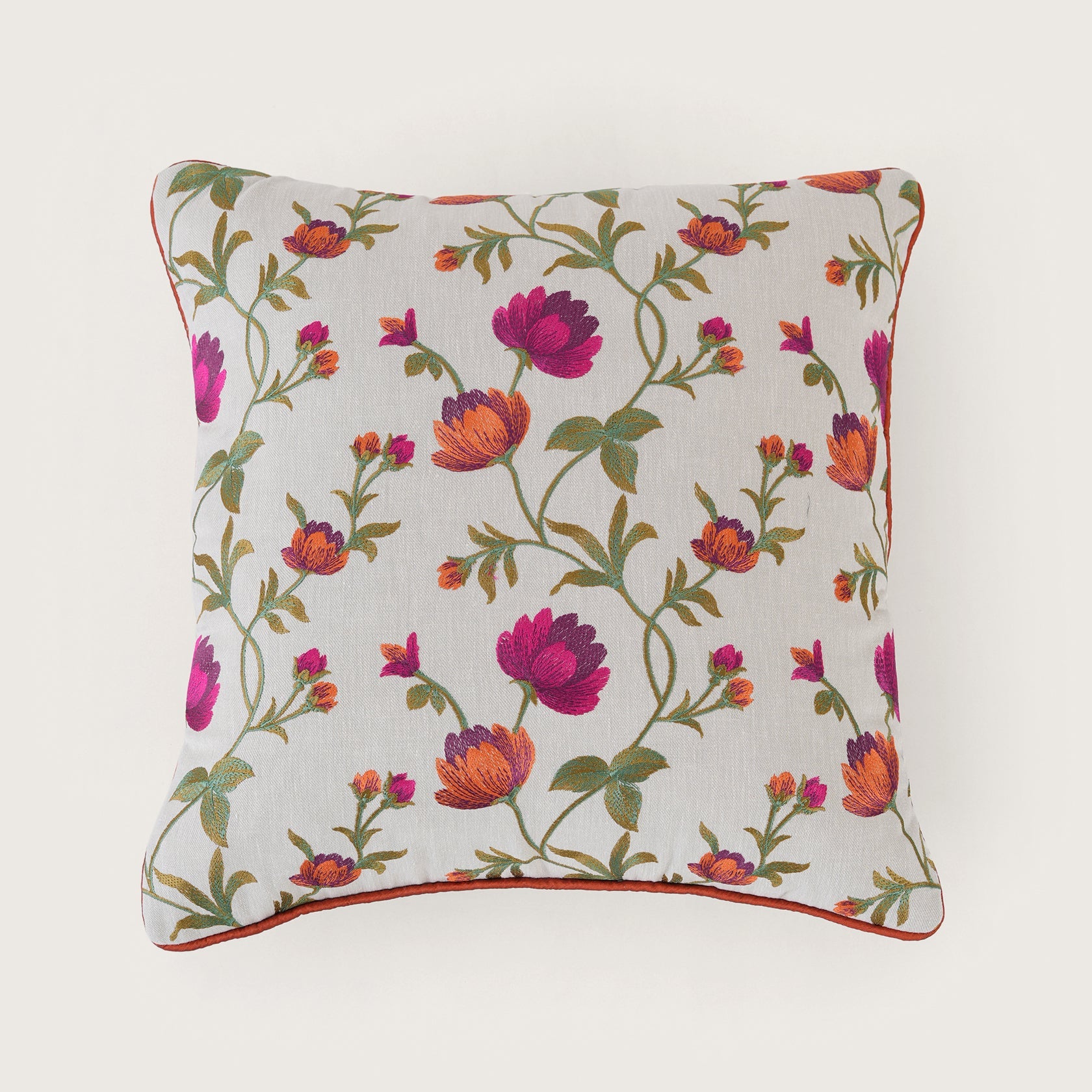 Embroidered Orange Floral Vine Cushion Cover