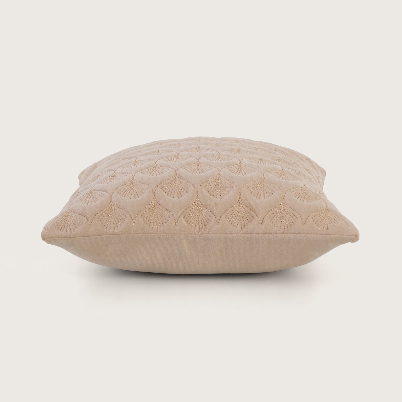 Elevate your interior decor with this sophisticated Art Deco-inspired velvet cushion cover, designed to bring a touch of timeless glamour to any room. Crafted from exceptionally plush, high-grade velvet, this cover features an intricate metallic fan embroidery that creates a stunning quilted texture and a subtle, luxurious sheen. The meticulous scalloped stitching provides a refined, three-dimensional aesthetic that serves as a perfect statement piece for your sofa, armchair, or bedding.