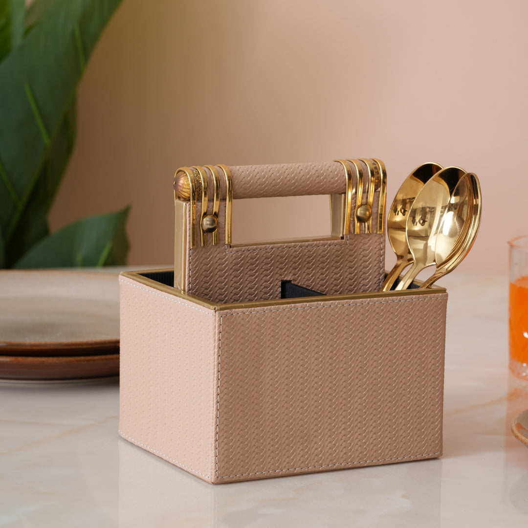 Rectangle Spoon Stand/Cutlery Holder Leather - Beige