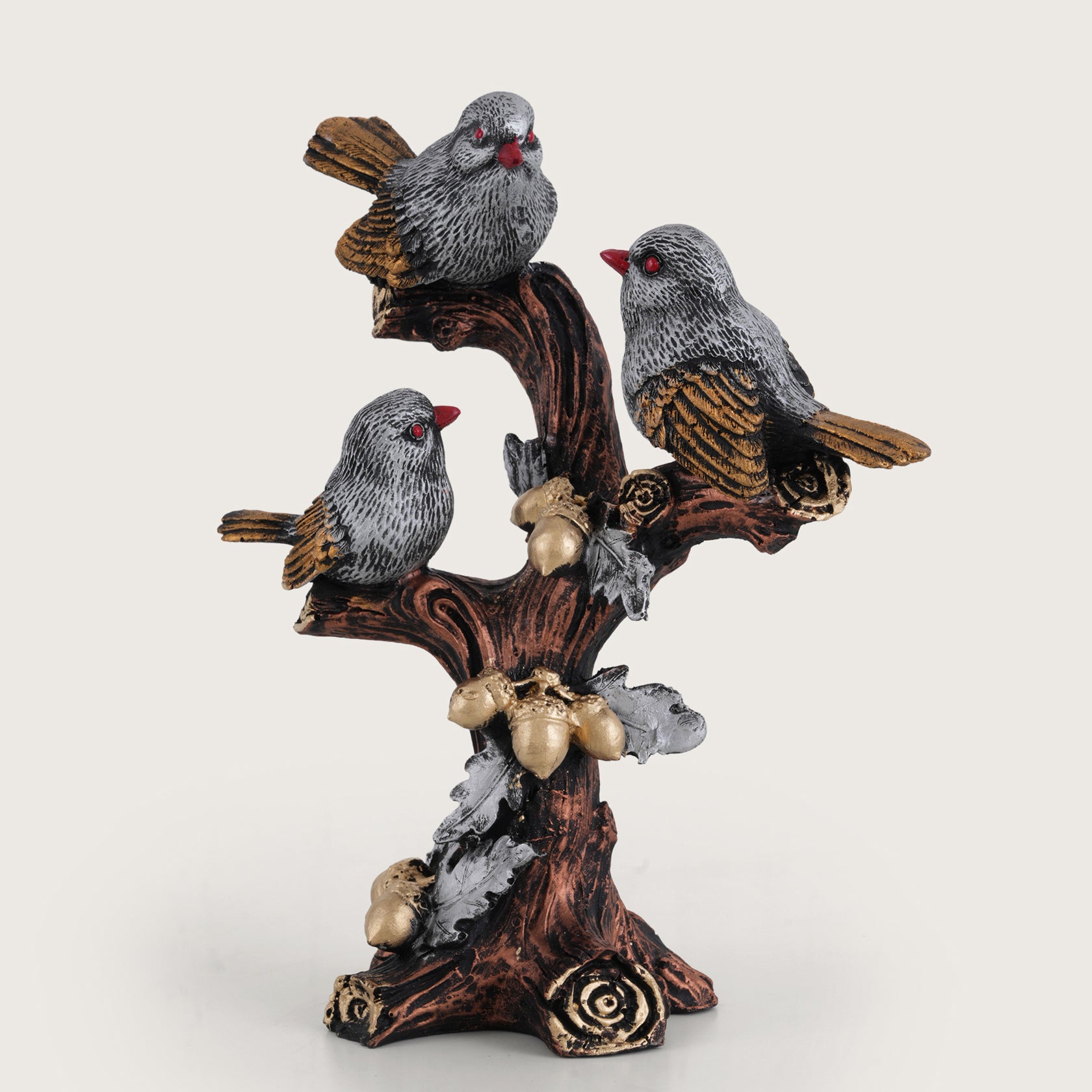 Invite the tranquility of the outdoors into your home with this Exquisite Three-Bird Sanctuary Showpiece. This intricately detailed sculpture features a trio of songbirds perched gracefully upon an aged, tree branch. Every element is designed to capture the essence of a serene forest scene, from the textured feathers of the birds to the lifelike bark and delicate oak leaf accents.