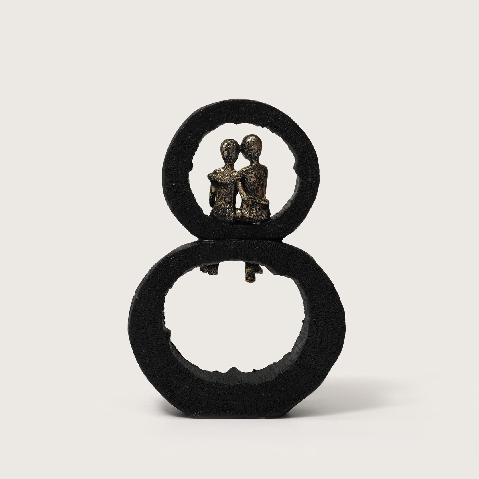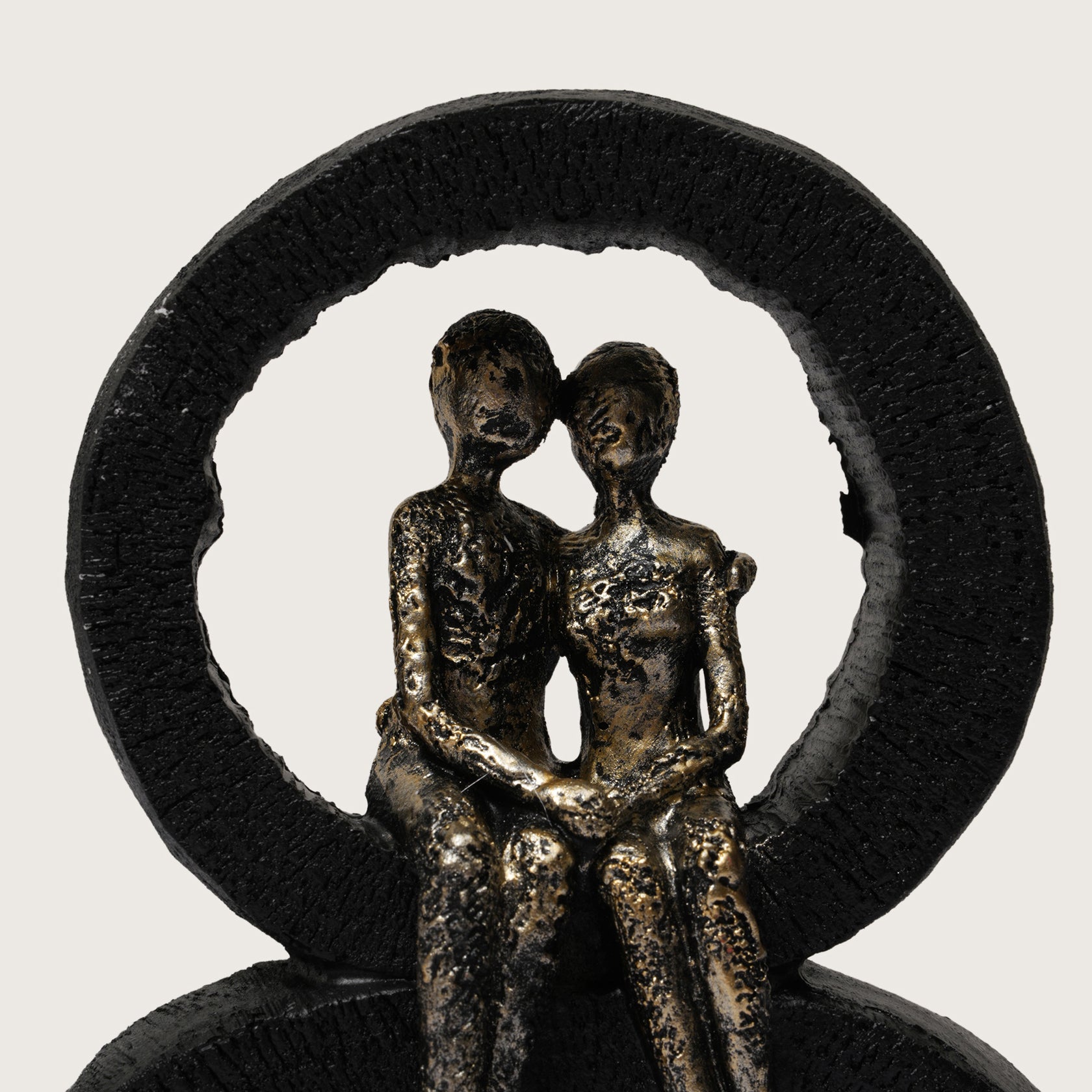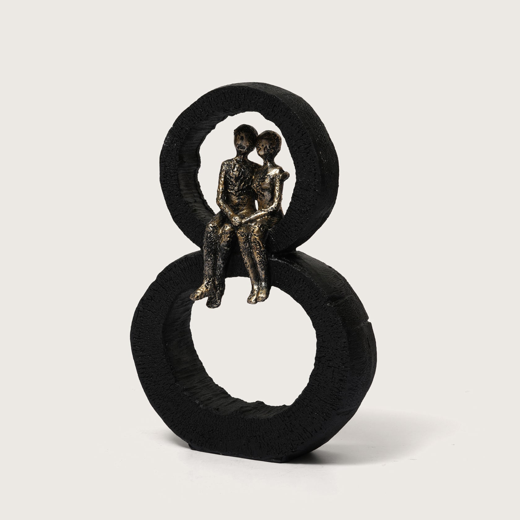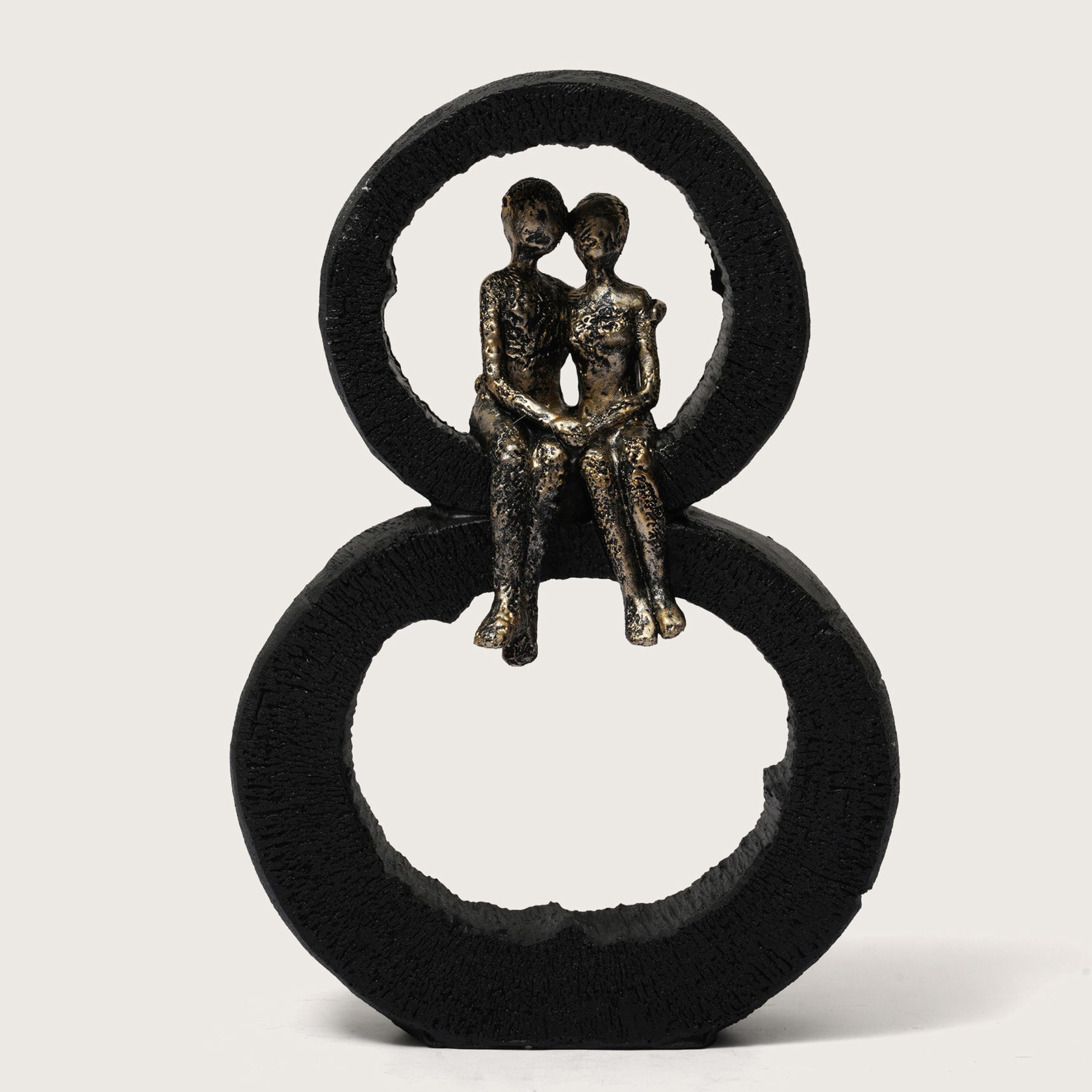 This poignant sculpture celebrates everlasting love, featuring a gold-patina abstract couple seated on a striking black figure-eight (infinity symbol). The bold texture of the base contrasts beautifully with the tender embrace of the figures. A powerful statement piece and a perfect wedding, anniversary, or Valentine's Day gift to symbolize an enduring bond.