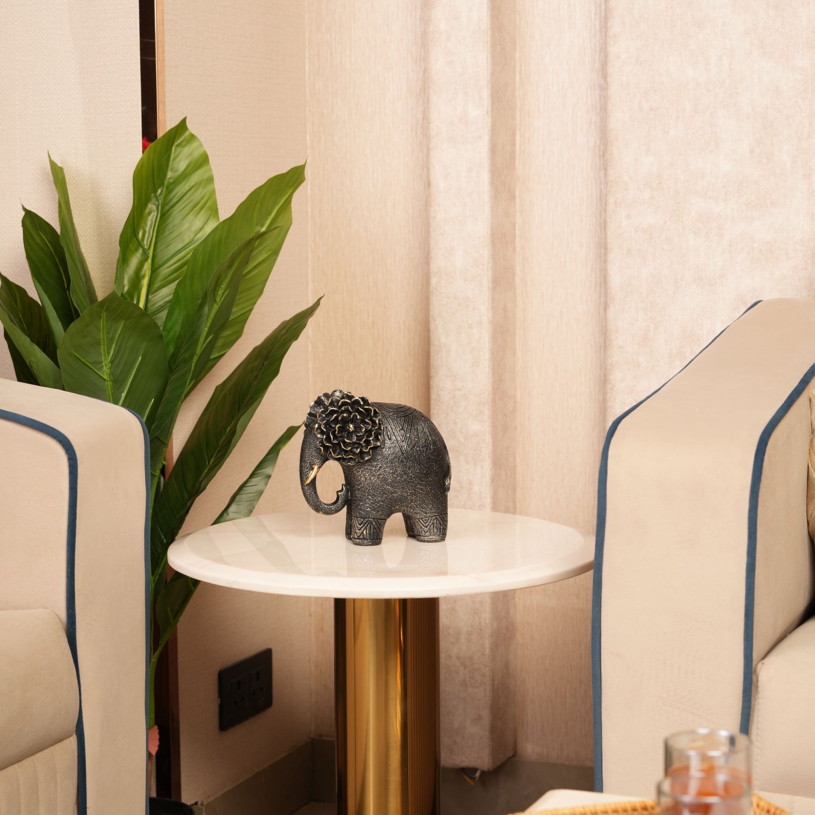 Textured Black Elephant Sculpture with Gold Flower Headpiece