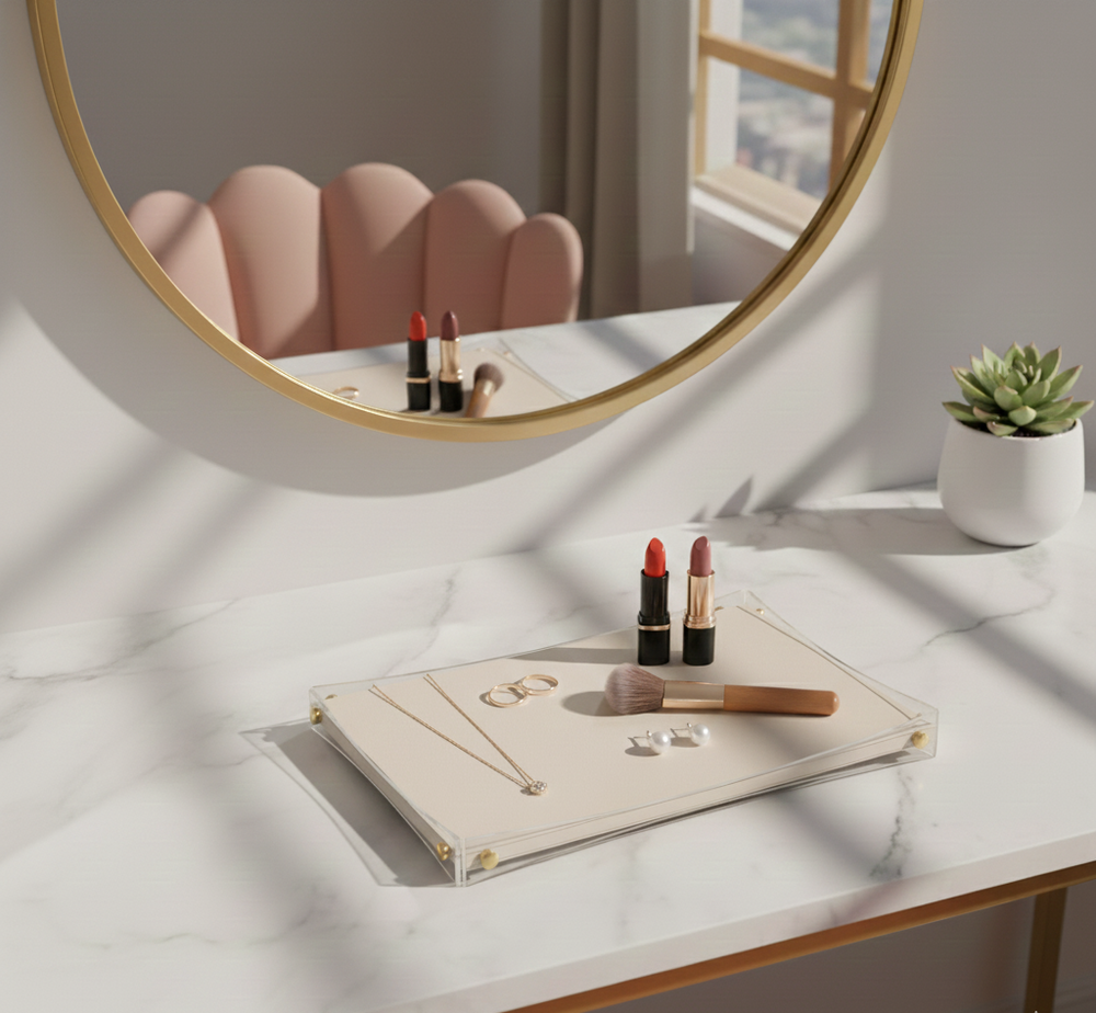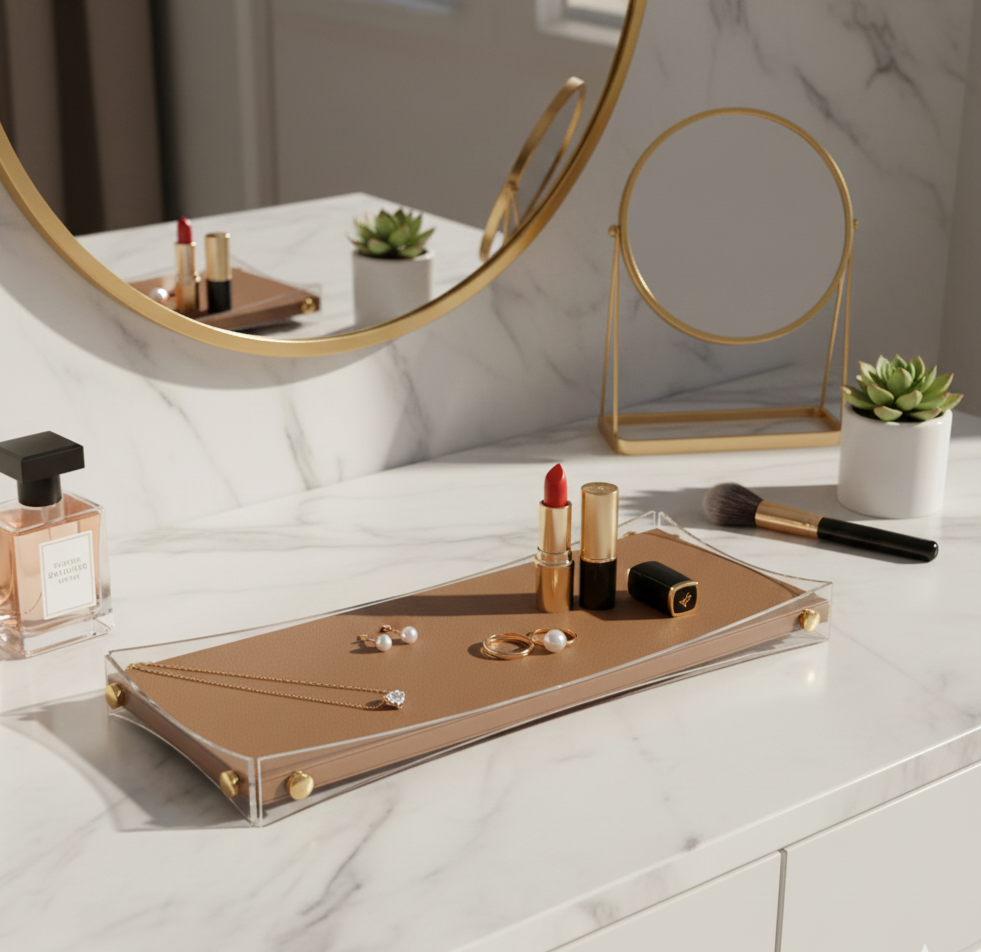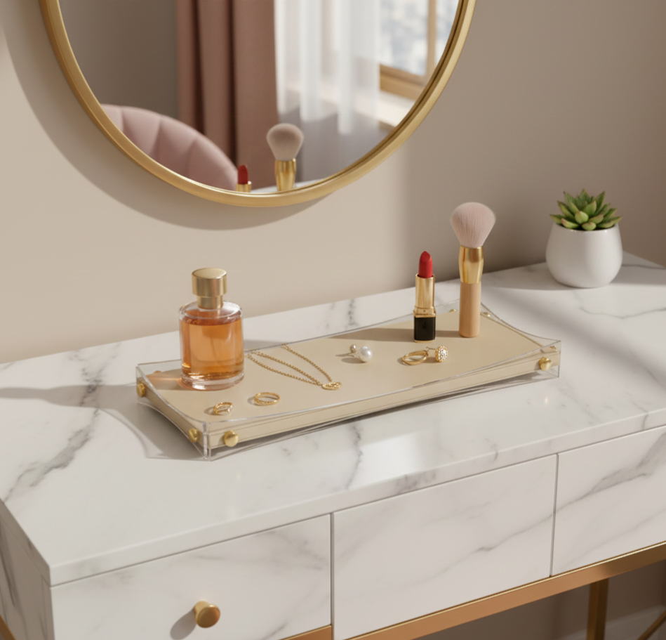 Golden Hour Archway Accent Tray with Clear Handles - Medium