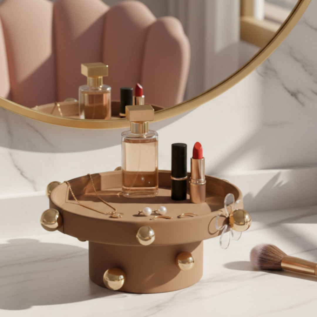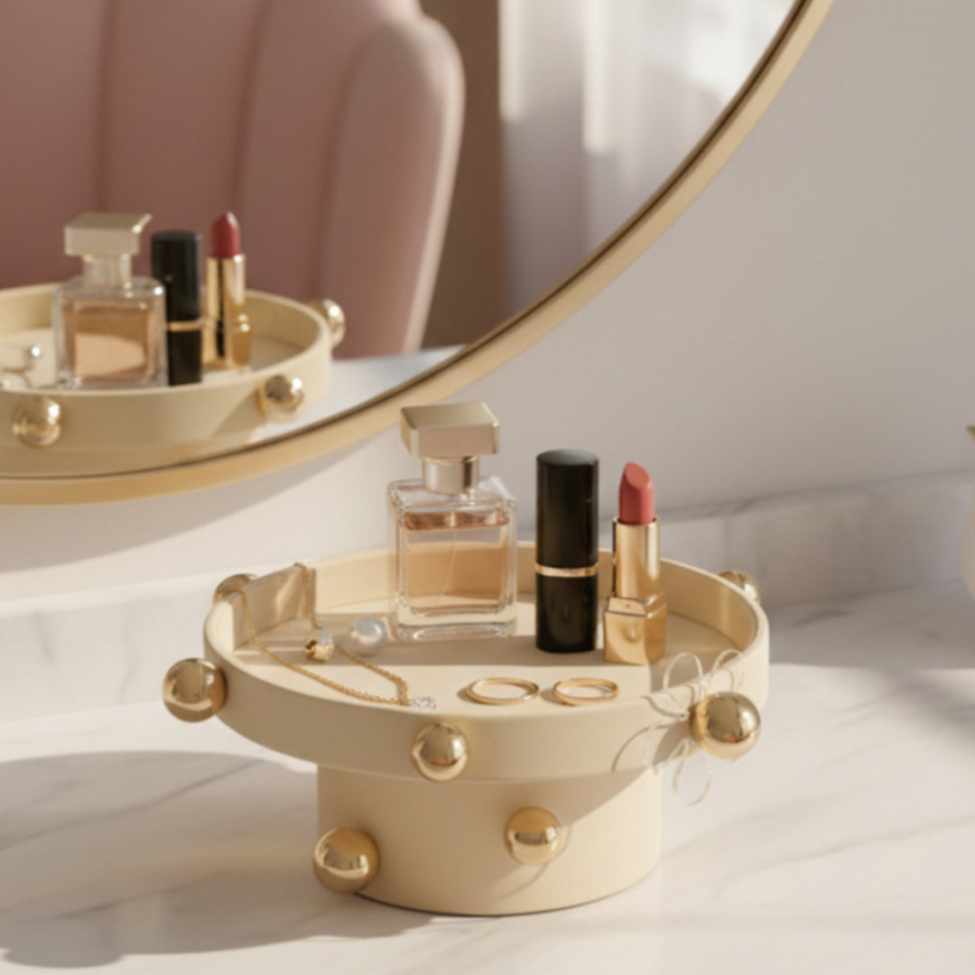 Luxe Sphere-Embellished Round Display with Acrylic Flower Accent