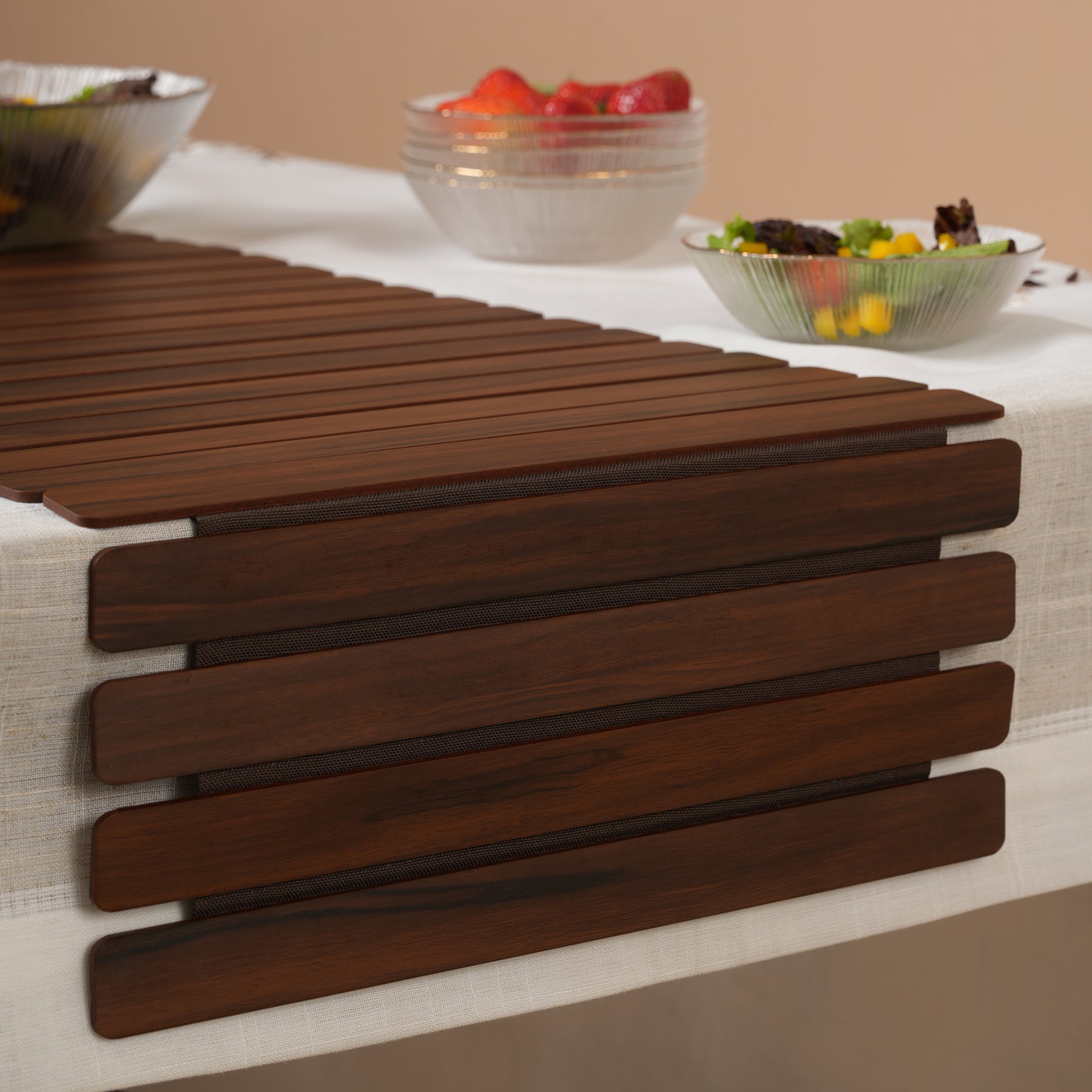 Elevate your dining room aesthetic with this sophisticated 14x 36 inch table runner, featuring a contemporary slatted wood design in a rich Oak-Toned finish. This versatile piece combines the natural warmth of bamboo with a clean, minimalist silhouette that complements both modern and rustic decor. Its durable construction protects your surfaces from heat and scratches while providing a textured, architectural backdrop for centerpieces and holiday spreads.