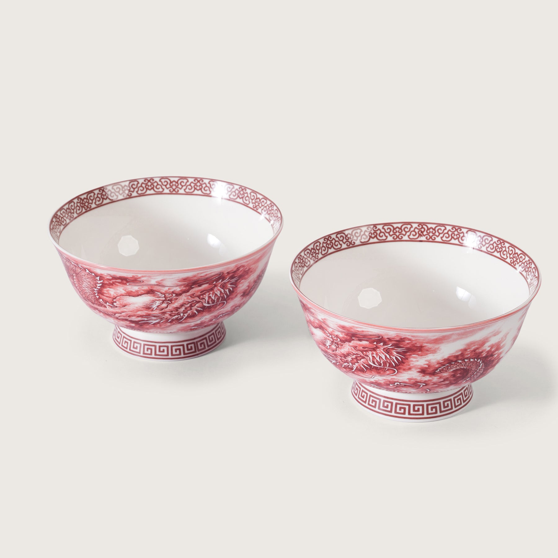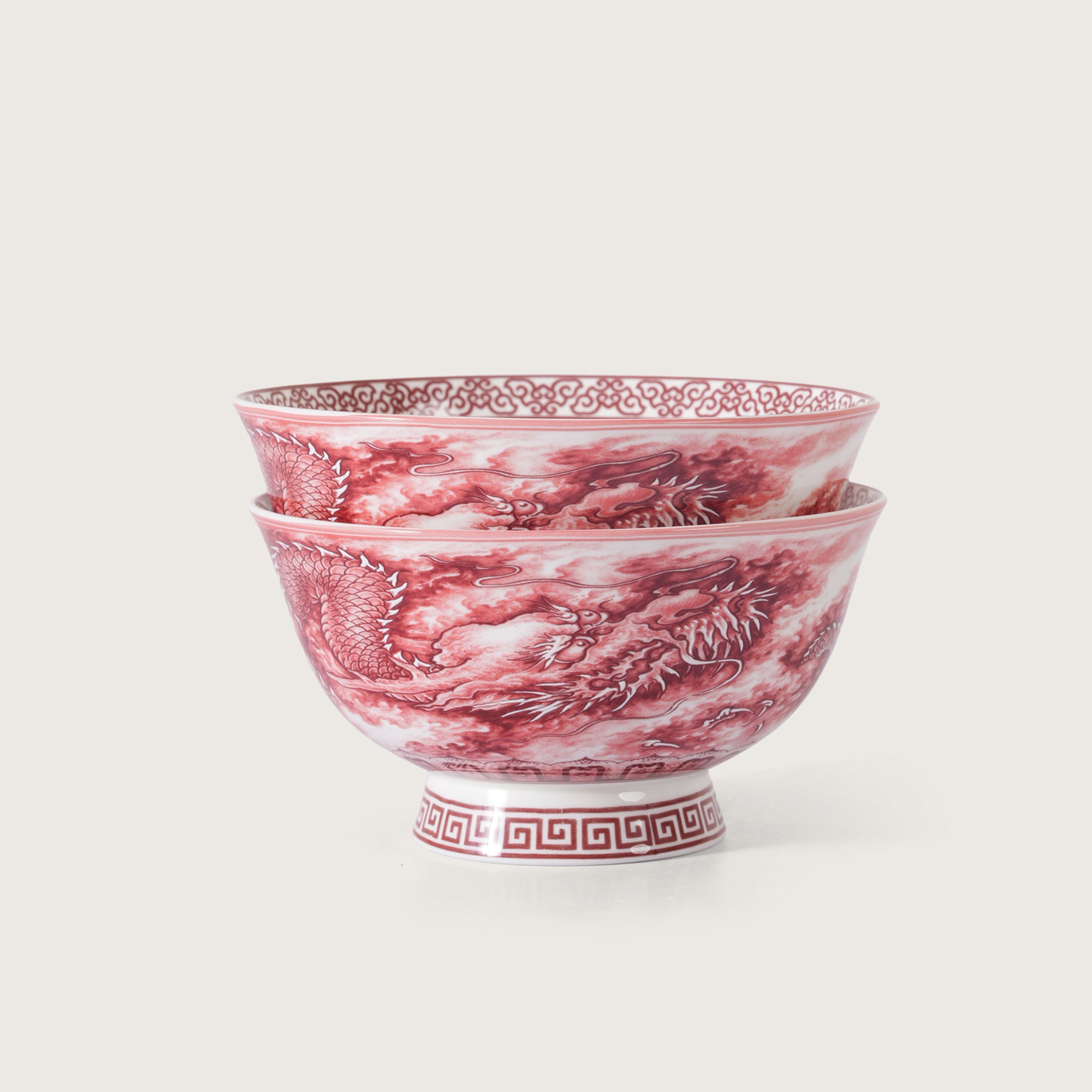 Elegant ceramic soup/ramen bowls featuring a rich red dragon pattern, perfect for serving noodles, soups, or snacks. Their traditional artwork and sturdy build add a touch of heritage charm to any dining setup. Comes as a premium set of two.