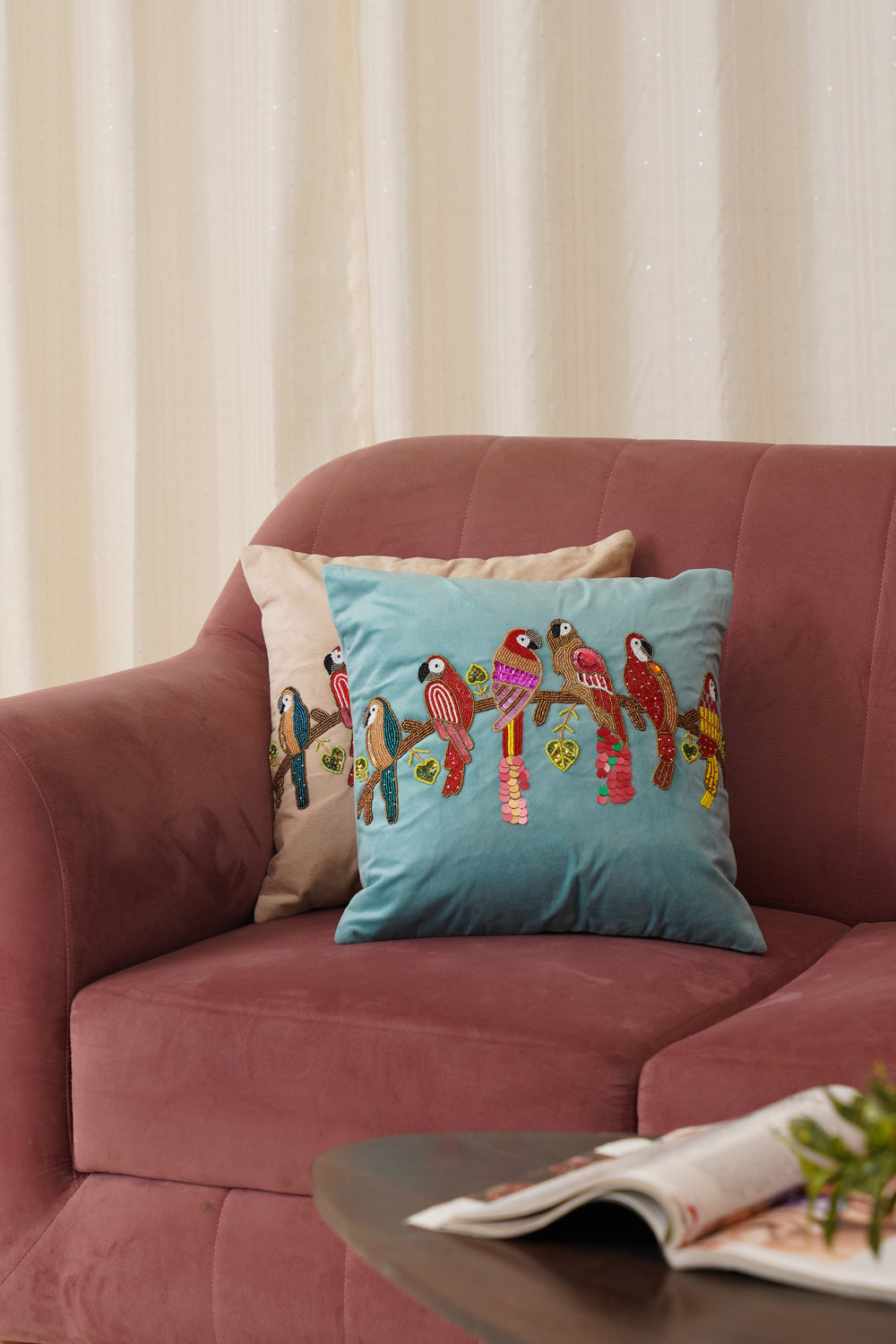 Parrot Cushion Cover 16 x 16 (Aqua)