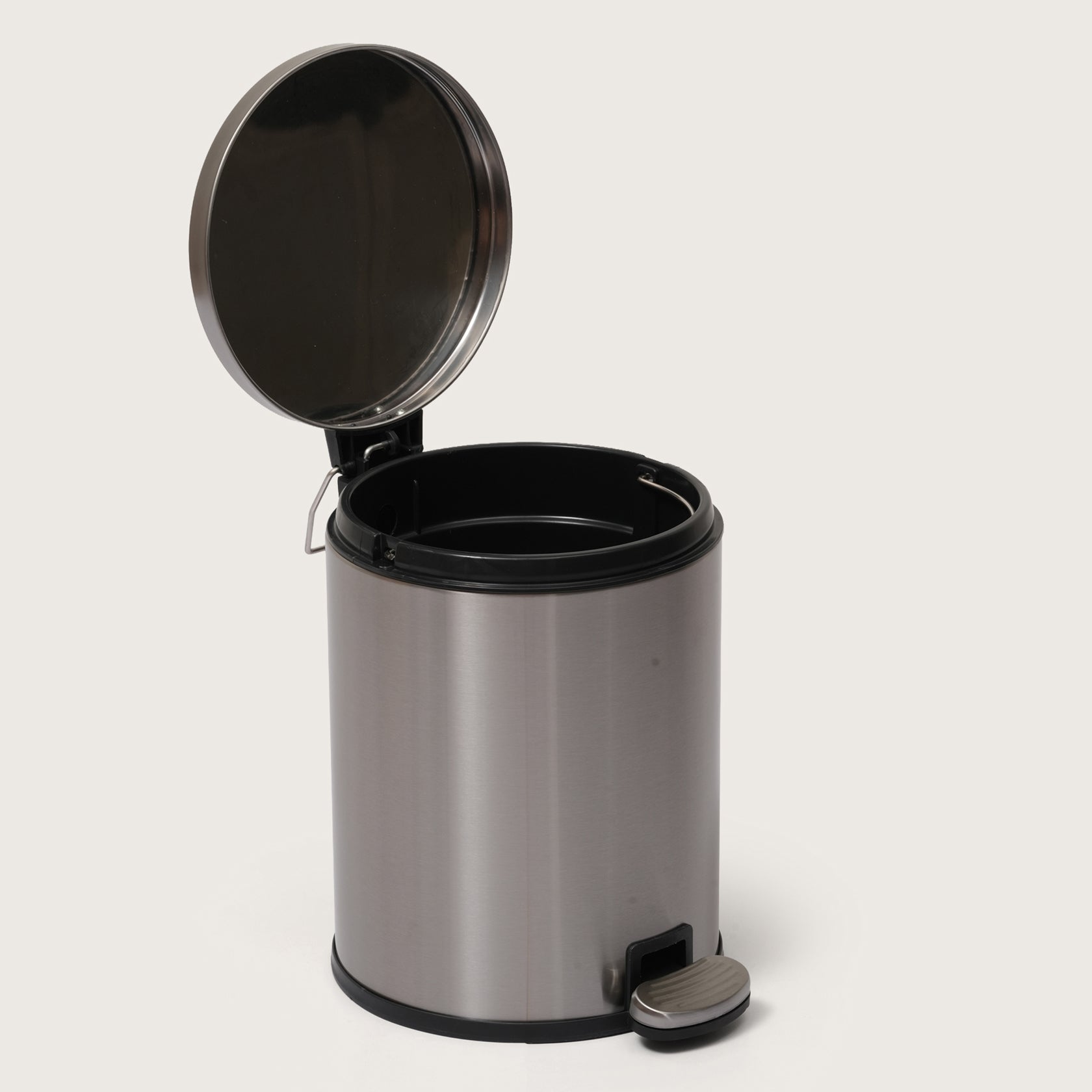 his 5L Silver Pedal Bin is crafted from high-quality brushed stainless steel to resist fingerprints and smudges. Perfect for bathrooms or offices, it features a durable foot pedal for hands-free operation. Its neutral metallic finish adds a clean, professional touch to any modern interior while keeping your space organized.