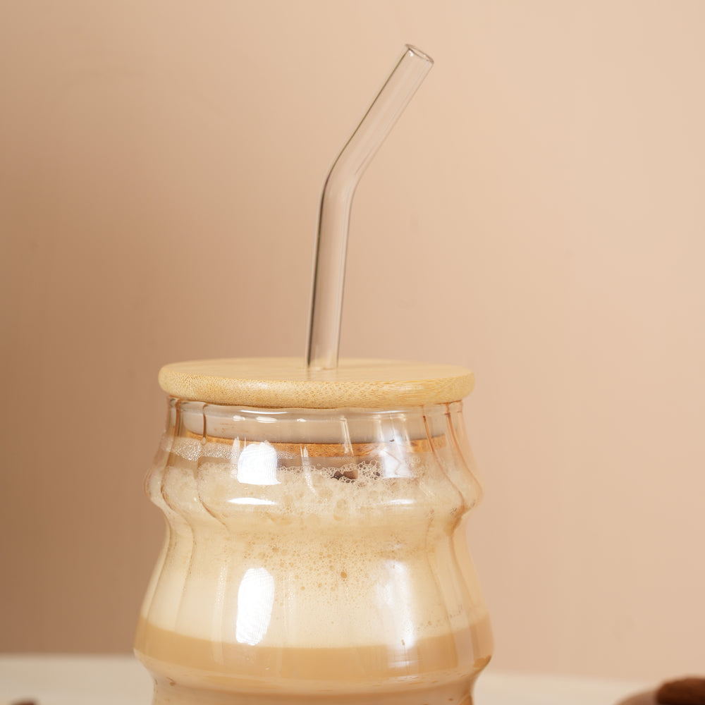 Golden Ripple Glass Tumbler with Bamboo Lid and Glass Straw