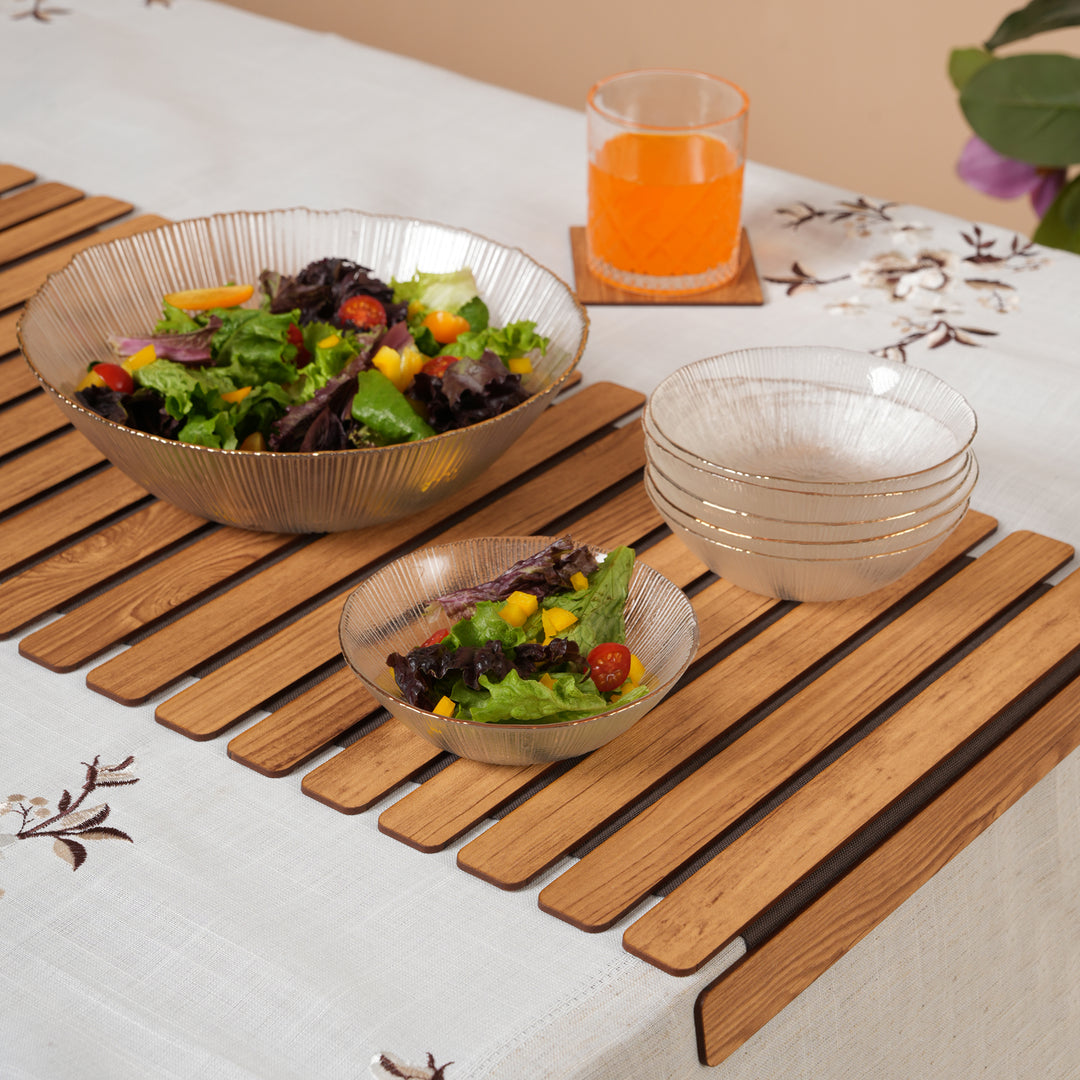 Luxe Glass Serving Bowl Set with Gold Rim – 1 Large Bowl & 6 Individual Bowls