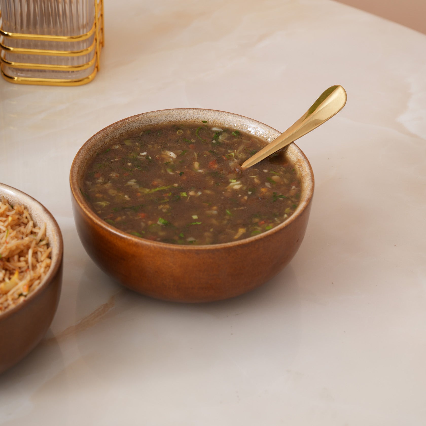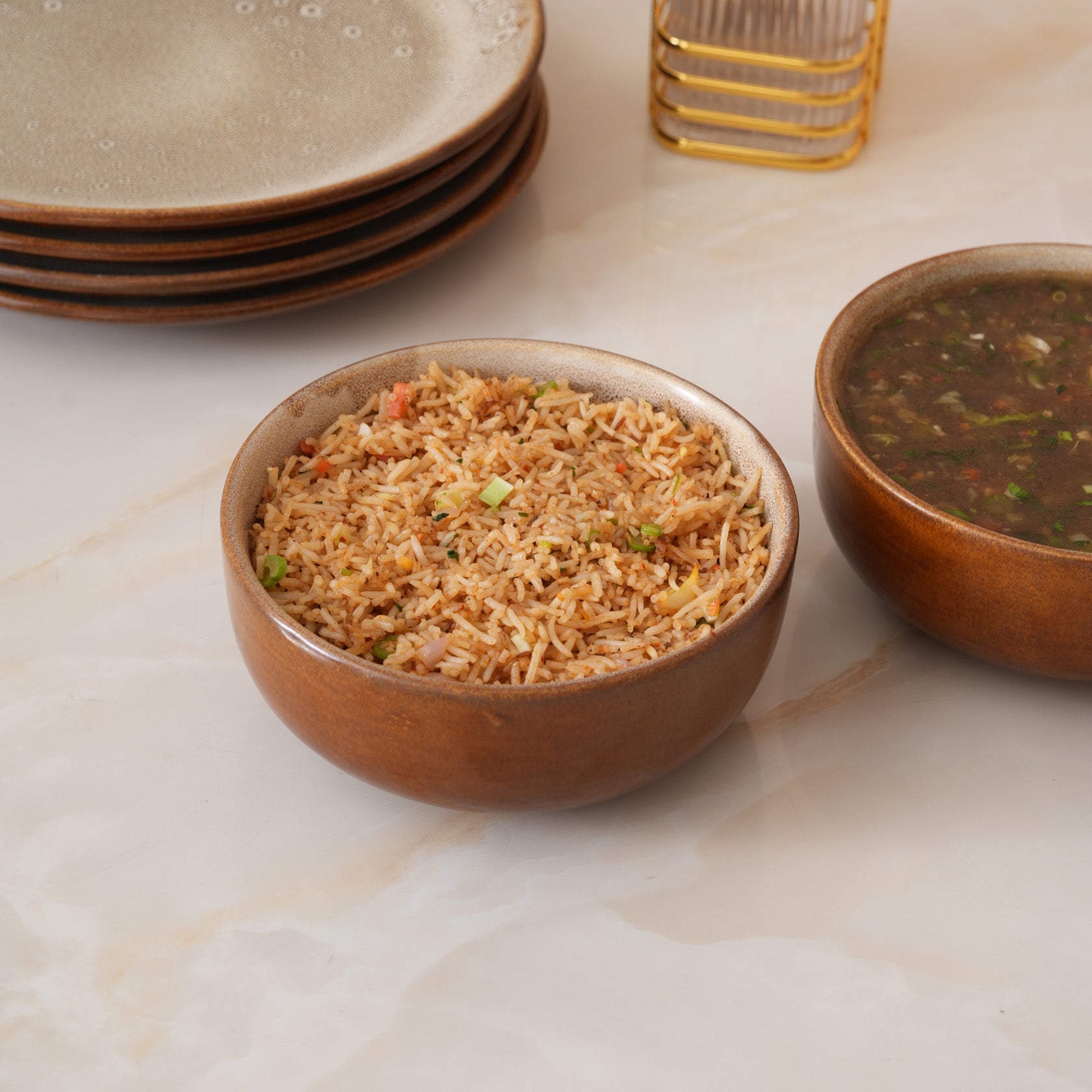 Add warmth to your dining table with this set of two large earth-toned bowls. Expertly crafted with a rich sienna exterior and a beautifully speckled, sand-textured interior, these stoneware bowls offer a perfect balance of rustic charm and modern utility. Ideal for serving hearty salads, pastas, or grain bowls, their deep, organic silhouette brings an artisanal touch to every meal.