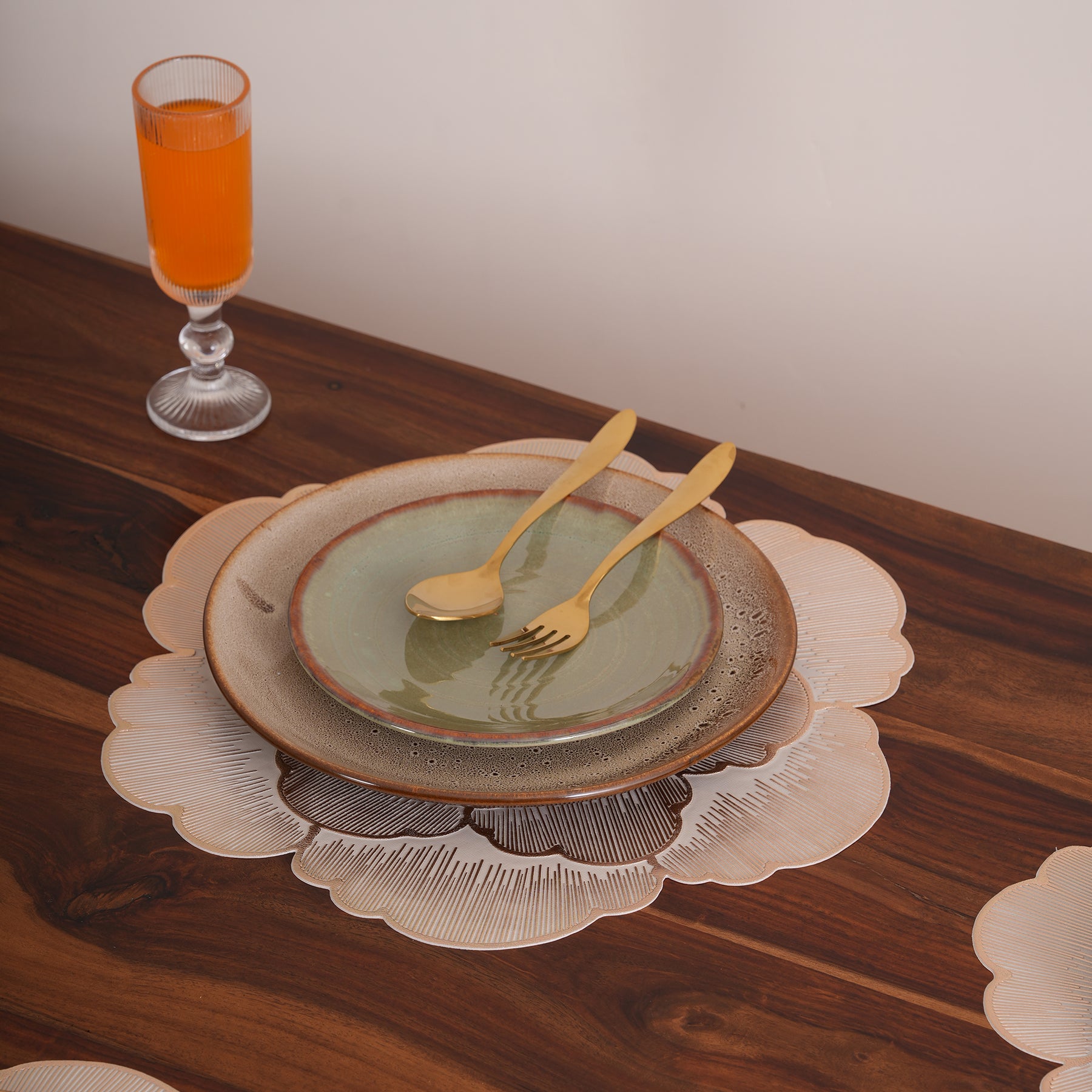 Bring a touch of modern luxury to your dining table with this set of 6 metallic rose gold placemats, featuring an elegant multi-layered camellia blossom design. Expertly crafted from high-quality PVC, these durable mats provide reliable heat resistance and superior surface protection. Their stunning, washable, and non-slip construction makes them as practical for daily family meals as they are for sophisticated celebrations and holiday hosting.