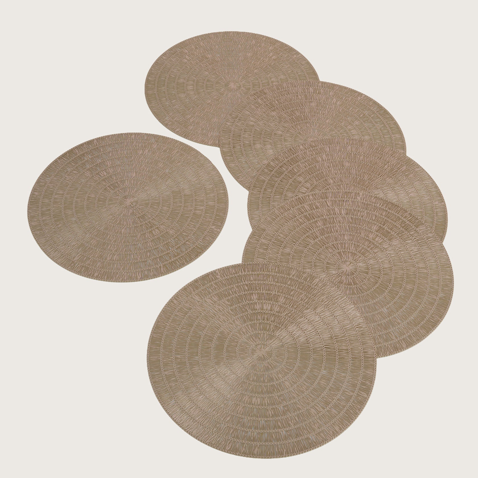 Bring a refined, natural aesthetic to your home with this set of 6 premium rose gold placemats, featuring an elegant Round Spiral. Crafted from high-quality, durable PVC, these heat-resistant mats provide excellent protection for your surfaces while adding a luxurious metallic shimmer. Their non-slip, washable design ensures effortless maintenance, making them an ideal choice for both daily family dining and sophisticated special occasions.