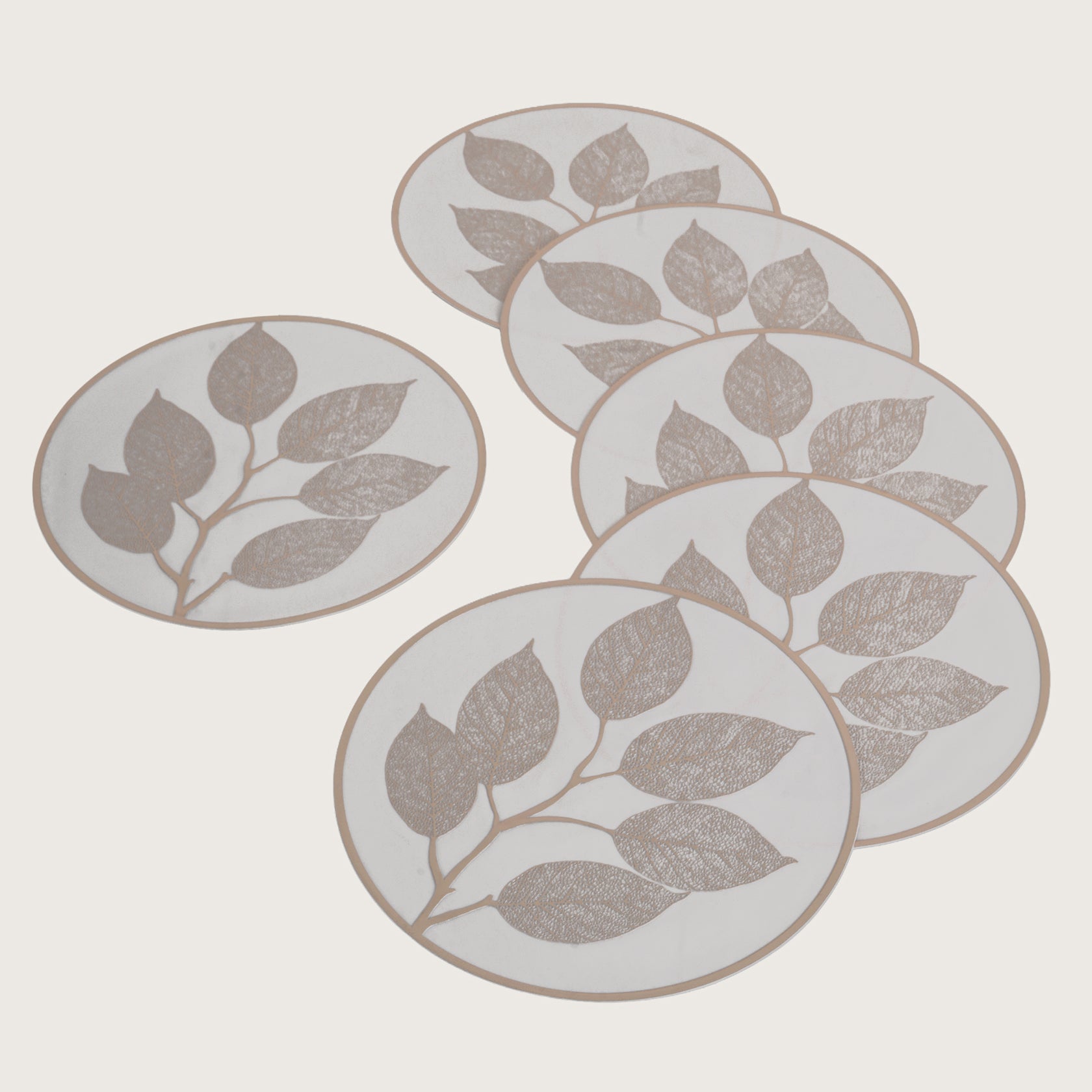 Elegant Leaf Engraved Round Placemat Set of 6