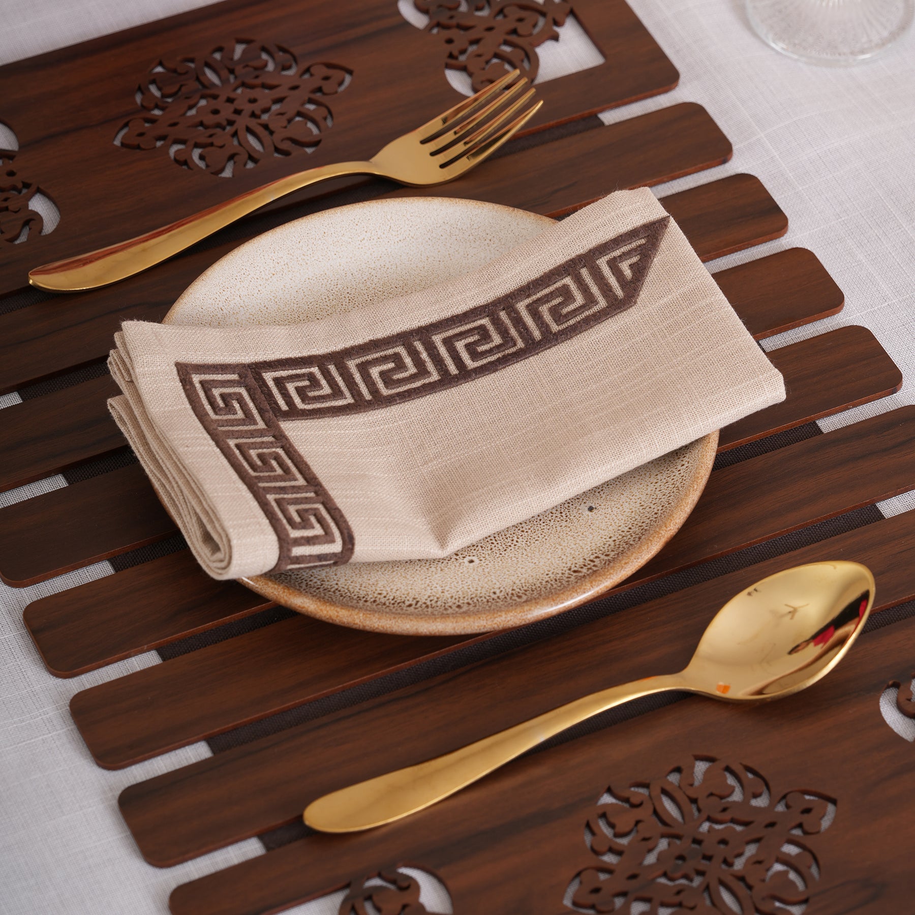 Ivory & Espresso Meander Embroidered Napkins - Set of 6