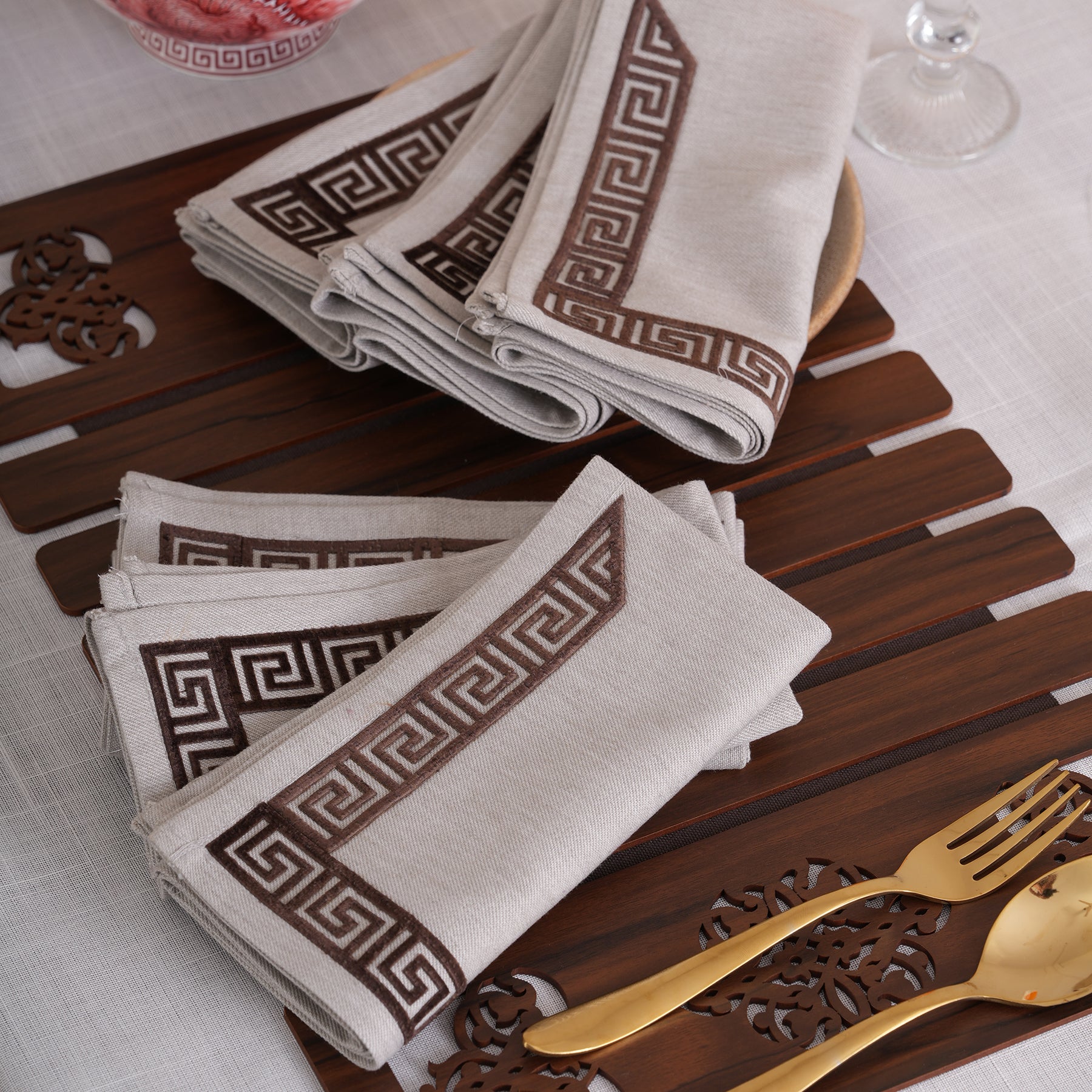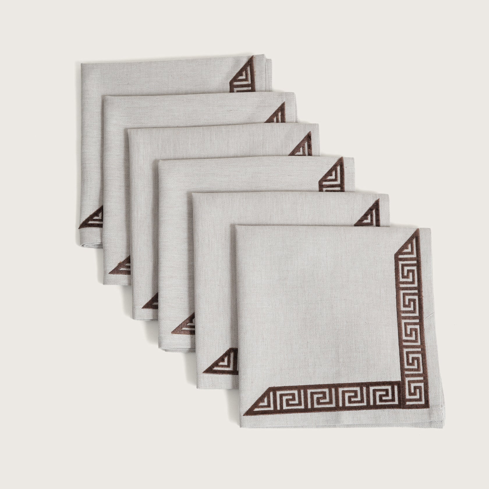 Modern and minimalist, our Dove Grey napkins are designed for the contemporary home and sold as a set of 6. The cool-toned grey fabric provides a sleek, urban look that contrasts beautifully with the warm chocolate embroidery. These napkins are the perfect choice for modern dining spaces, offering a sophisticated alternative to traditional warm neutrals.