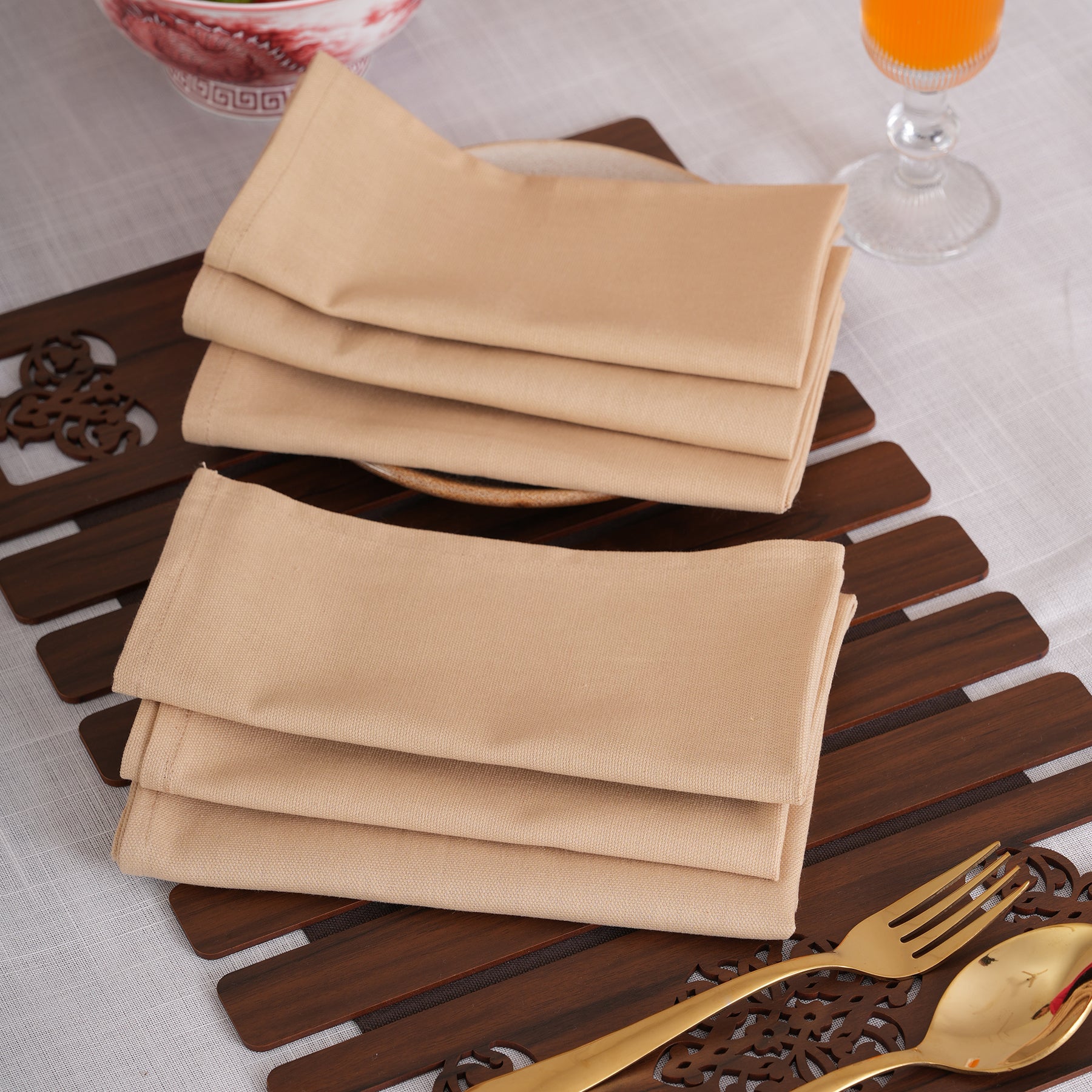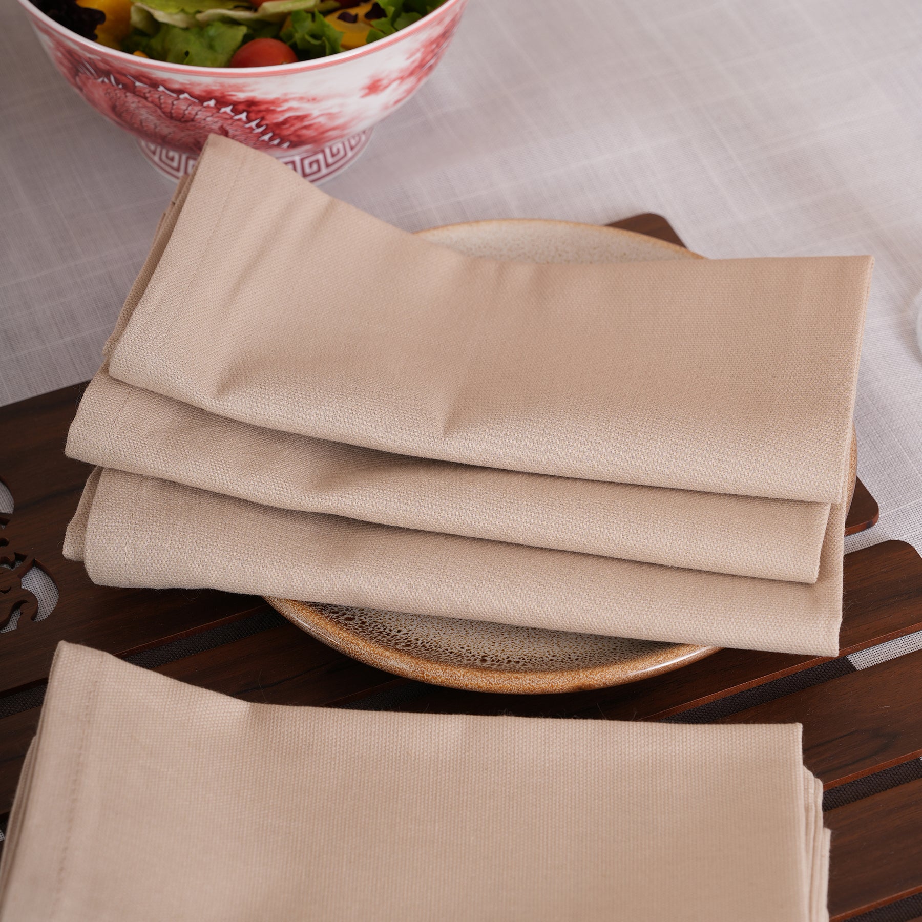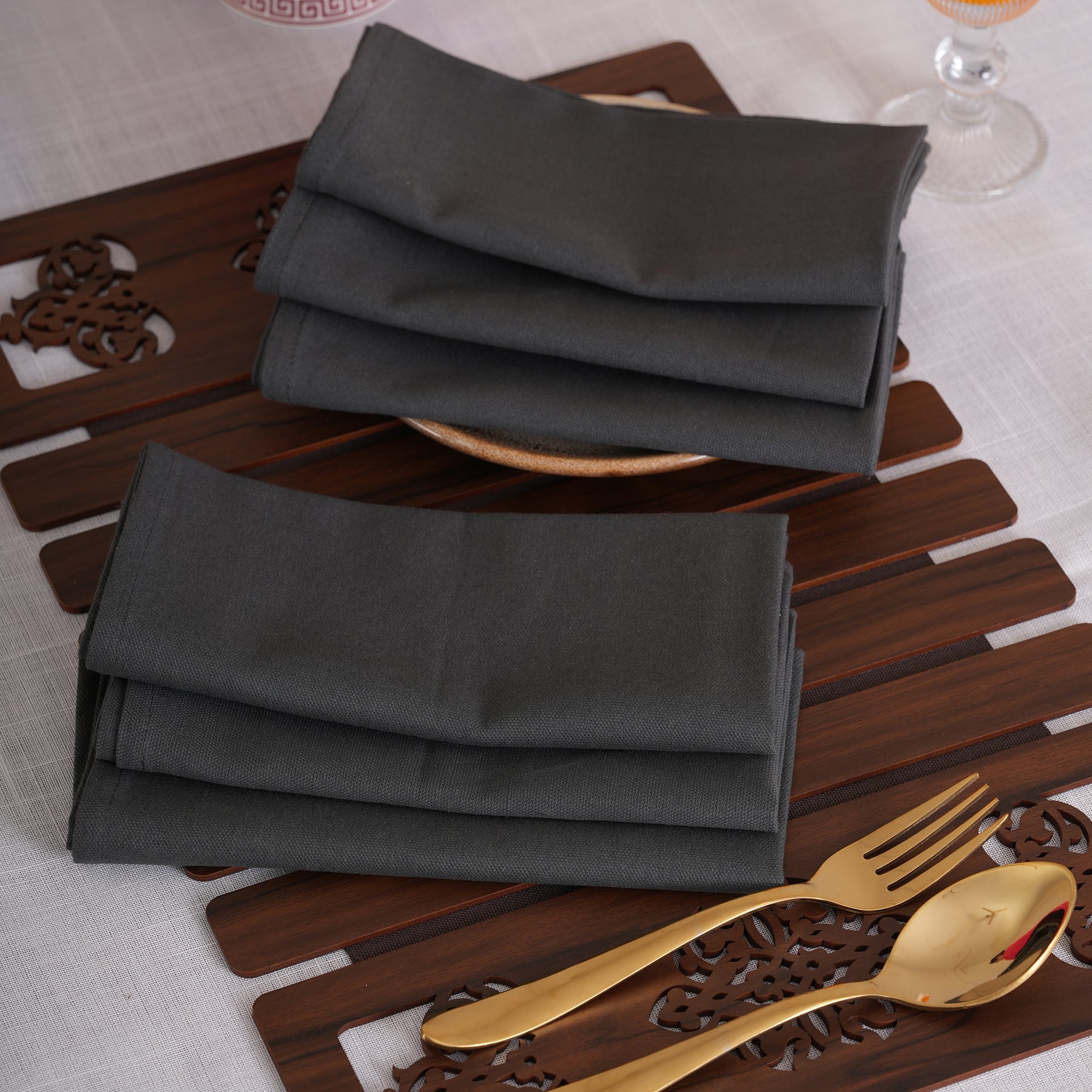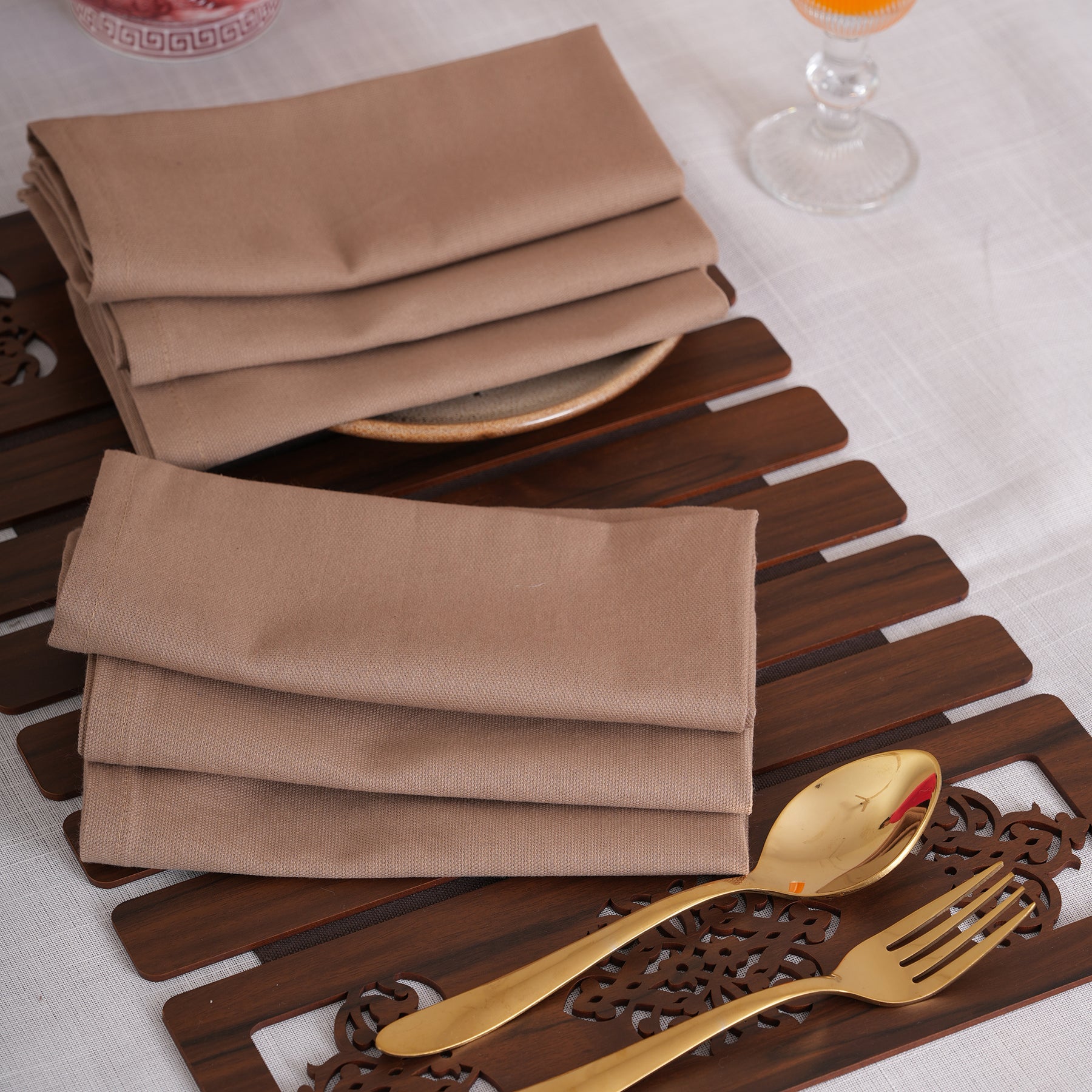 Experience timeless sophistication with our Solid Linen-Style Dinner Napkins, available in a set of 6. Featuring a refined woven texture and hemmed edges, these versatile linens come in 8 stunning shades—from deep Espresso and Midnight Navy to soft Ivory and Dusty Rose. Durable yet elegant, they are the perfect minimalist essential for every occasion.