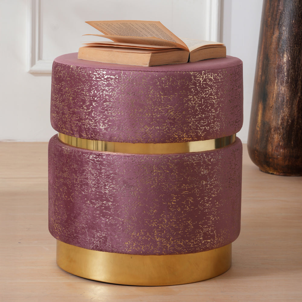 Luxury Accent Velvet Finish & Metallic Gold Detailing Ottomans Footstools | Pouffe | Pink