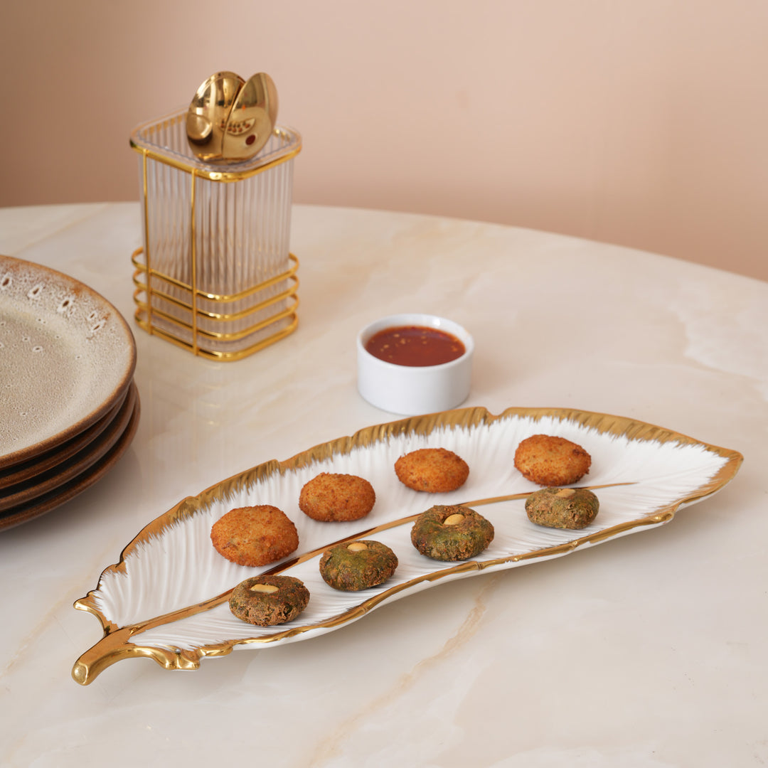 Rustic Earthen Leaf Shaped Serving Platter Set of 2