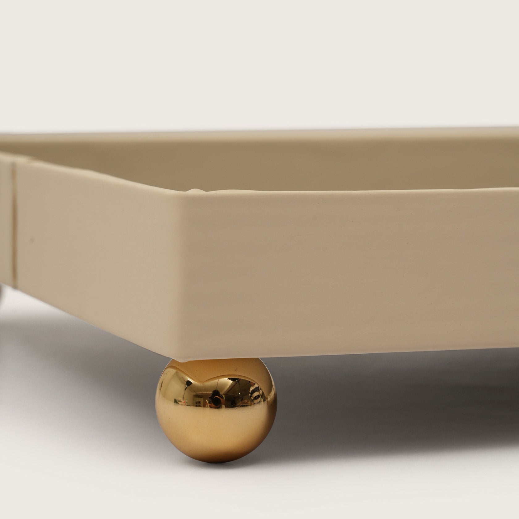 The Decorative Rectangular Tray Polished Gold Sphere Feet - Large