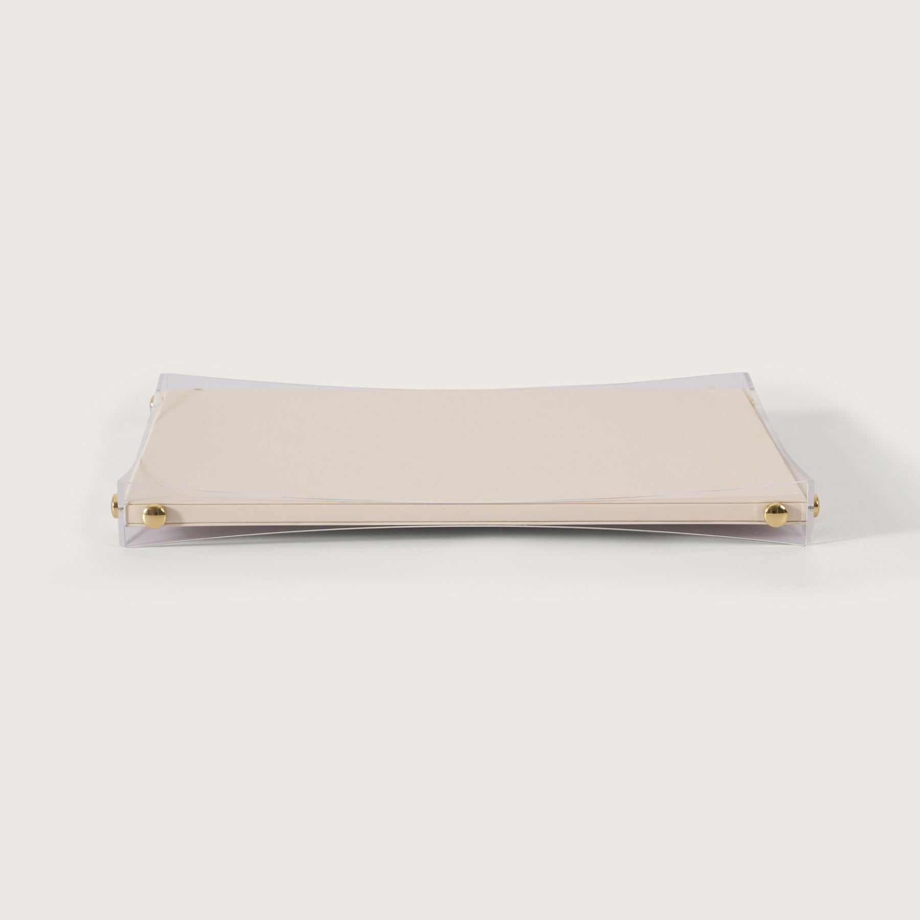 Elevate your décor with this stylish acrylic display tray, designed with clear edges and chic gold hardware for a refined, modern finish. Its smooth neutral base makes it ideal for showcasing perfumes, skincare, candles, keys, or desk essentials. Durable, lightweight, and versatile, this contemporary tray adds a touch of elegance to any dressing table, coffee table, or workspace.
