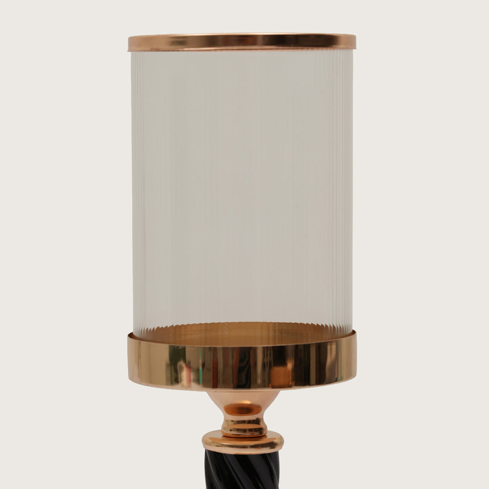 Premium Black-Spindle Candle Holder With Fulted Glass Accent - Large