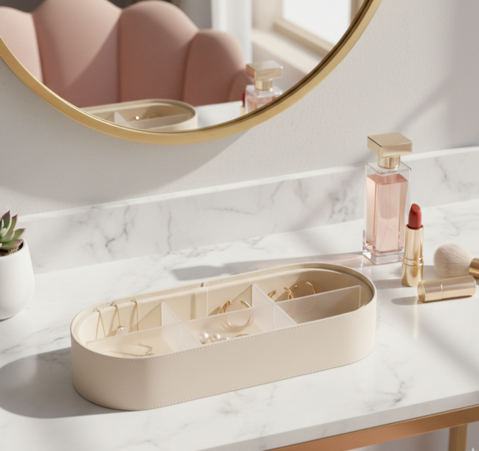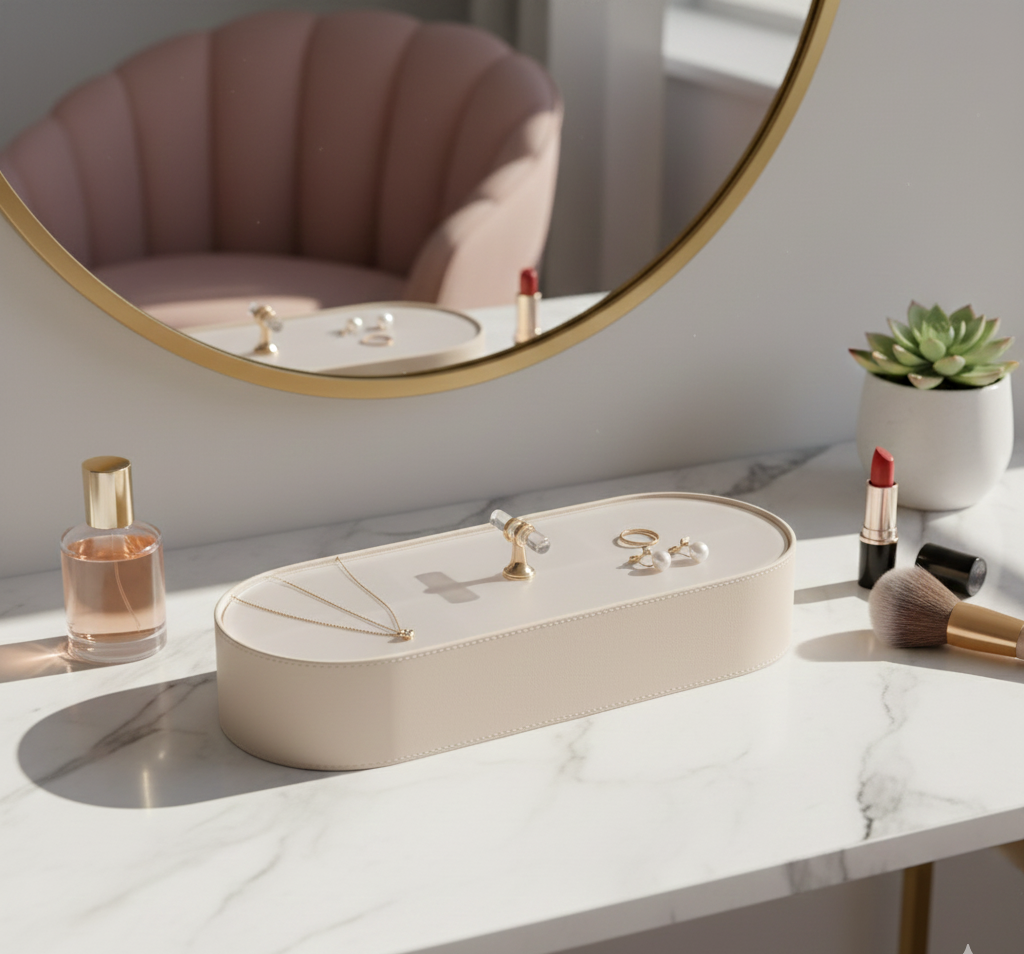 Curved Rectangular Desk Organizer Tray: Beige - Large