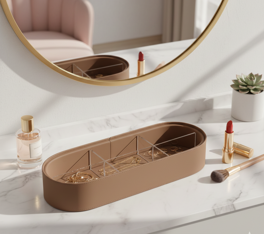 Luxe Leather Oval Accent Tray WIth Brown Accent - Medium