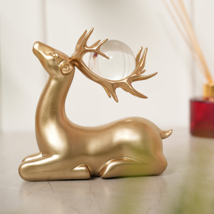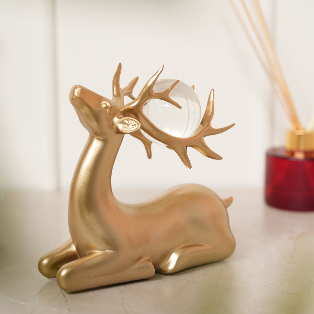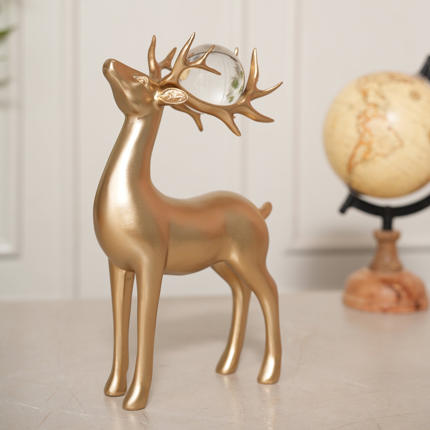 A stunning gold statue featuring majestic stags, symbolizing grace, strength, and nobility. The intricate detailing and elegant design make it a perfect decorative piece for nature lovers. Ideal for enhancing home decor with a touch of luxury and wilderness.